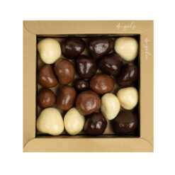 Ingredients: MILK chocolate 37% (sugar, cocoa butter, whole MILK powder, cocoa mass, WHEY powder, MILK fat, emulsifiers (SOY lecithin, E 476), flavouring vanillin), caramel cOATing 16% (sugar, vegetable fat (palm), caramel-flavoured powder (skimmed MILK powder, sugar, palm oil, colouring E 150c, antioxidant sunflower lecithin, toffee flavouring, acidity regulator sodium citrates), chocolate 9.2% (sugar, cocoa mass, cocoa butter, emulsifier SOY lecithin, flavouring agent vanillin), raspberry pieces 8.8% (apples, raspberry puree, elderberry juice, fructose-glucose syrup, glucose syrup, sugar, WHEAT fibre, vegetable fat (palm), thickener pectin, acidity regulators (apple and lemon acid), natural flavouring), salted “Pretzels” 6.5% (WHEAT flour, salt (2.6%), sunflower oil, BARLEY malt extract, yeast), white chocolate 4.4% (sugar, cocoa butter, whole MILK powder, emulsifier SOY lecithin, natural vanilla flavouring), sugar, corn crisps 3.2% (WHEAT flour, corn flour (22%), sugar, salt, cocoa powder), vegetable fat (palm, shea butter, palm kernels), CASHEWS (1.8%), skimmed MILK powder, mango granules 0.4% (sugar, mango puree (34%), corn starch, water), popping sugar 0.4% (corn syrup, sugar, carbon dioxide), glazing agent tapioca starch, thickener acacia gum, caramel flavoured powder (skimmed MILK powder, sugar, palm oil, colour E 150c, antioxidant sunflower lecithin, toffee flavouring, acidity regulator sodium citrates), glazing agent shellac, emulsifier SOY lecithin, sea salt, flavourings. MILK chocolate contains 32.1% dry cocoa solids minimum, dry MILK solids: 14.7% minimum. Chocolate contains 50% dry cocoa solids minimum. Chocolate origin: EU and non-EU.