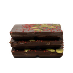 Dark chocolate (70 %) with stevia, pumpkin and cranberry seeds. With sweeteners, 100 g