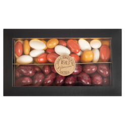 The collection consists of: crispy ALMONDS in white chocolate “Žara”, crispy ALMONDS in Ruby chocolate and blackcurrant.