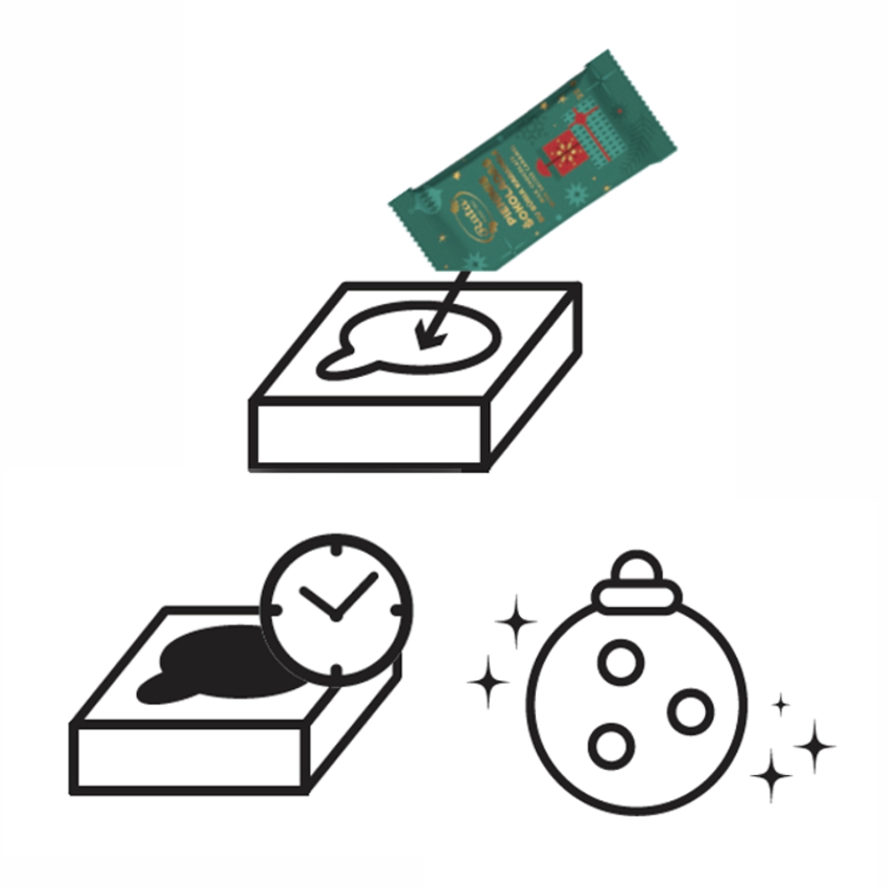 Ingredients: MILK chocolate (sugar, cocoa butter, whole MILK powder, cocoa mass, WHEY powder, MILK fat, emulsifiers (SOY lecithin, E 476), vanillin flavouring), white chocolate (sugar, cocoa butter, whole MILK powder, emulsifier (SOY lecithin, vanilla extract), sugar, raspberry pieces 8% (apple, raspberry puree, elderberry juice, fructose-glucose syrup, glucose syrup, sugar, WHEAT fibre, vegetable fat (palm), thickener pectin, acidity regulators (malic and citric acid), natural flavouring), glucose syrup, caramel 2.6% (sugar, glucose syrup, water, BUTTER, CREAM, salt (3.5%), raising agent sodium hydrogen carbonate), cocoa butter, vegetable fats (palm, shea, palm kernel), popping sugar 0.4% (corn syrup, sugar, carbon dioxide), glazing agents (tapioca starch, carnauba wax, beeswax, shellac), gelatine, strawberry flavouring and other flavourings, acidity regulator citric acid, maltodextrin, black carrot juice concentrate, algae spirulina, vitamin E, emulsifier SOY lecithin. MILK chocolate contains 32.1% dry cocoa solids minimum, dry MILK solids: 14.7% minimum. Chocolate origin: EU and non-EU.