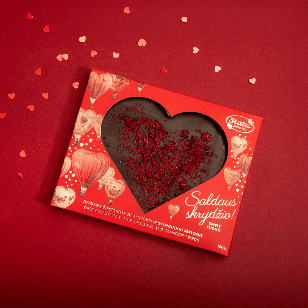 Inside a heart-shaped box you’ll find almonds in white chocolate and coffee “Sweet Flight!”– a small yet heartfelt gift for a sweet moment. Fans of classic flavors will enjoy the dark chocolate (50%) “Sweet Love!” and crispy almonds in white chocolate “Žara”. SWEET LOVE! And for a truly special moment of indulgence, there’s the handmade, heart-shaped dark chocolate (50%) with raspberries and cranberry seeds “Sweet Flight!” The romantic collection is completed by milk chocolate figurines “Love Letter” – a gentle gift that delights not only with heart- and lip-shaped chocolates, but also with a sincere message.