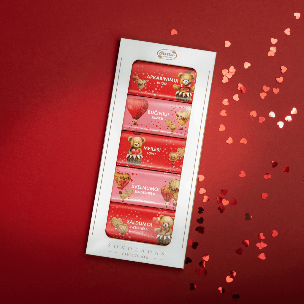 The festive, limited-edition includes chocolates, dragees, and chocolate figures, presented in packaging adorned with adorable teddy bears traveling in heart-shaped balloons.