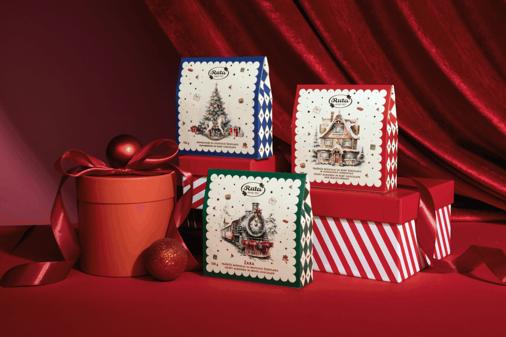Atraskite šventinę saldumynų kolekciją, įkvėptą klasikinių žiemos pasakų ir jaukios švenčių nostalgijos. Šventiniame „Rūtos“ asortimente – elegantiški šokoladinių saldainių rinkiniai, rankų darbo šokoladai, žaismingos saldainių dovanėlės ir kiti saldūs stebuklai, sukurti tam, kad šventės būtų dar šiltesnės ir magiškesnės. Tegul „Rūtos“ šventiniai gaminiai tampa džiugia ir nepamirštama saldžia dovana!
