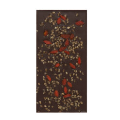 Juodasis šokoladas (70 %) su stevija, moliūgų ir spanguolių sėklomis. Su saldikliais, 100 g
