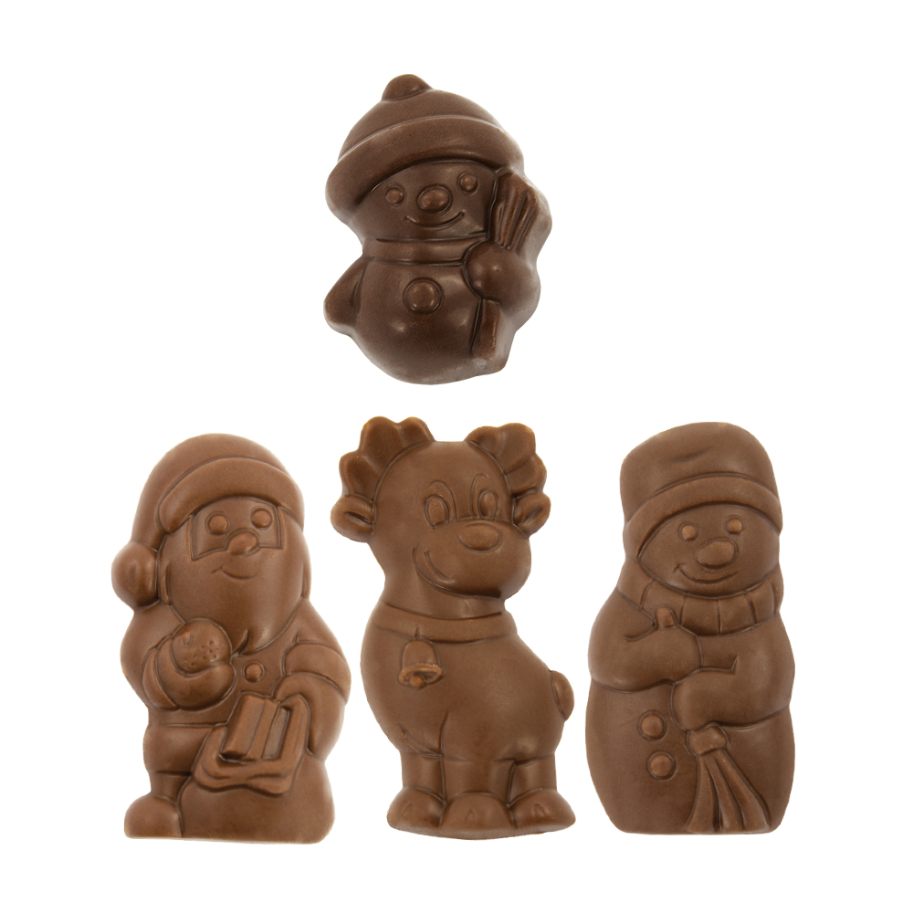 Šokoladinių figūrėlių rinkinys „Pasakiškų švenčių!“ džiugins ne tik gardžiu skoniu, bet ir žaismingomis formomis! Šventiškoje, retro stiliaus dėžutėje rasite žiemos švenčių personažus – juodojo (3 vnt.) ir pieninio šokolado (4 vnt.) figūrėles, kurios patiks ir mažiems, ir dideliems.