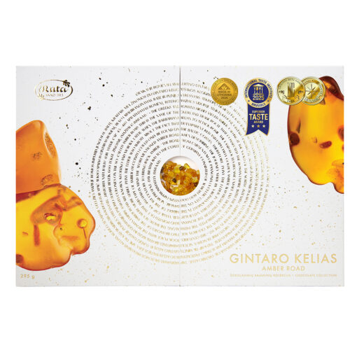 Pristatome išskirtinę suvenyrinės linijos šokoladinių saldainių kolekciją „Gintaro kelias“. Tai lyg kelionė po jūros gelmes ir gintaro formų bei spalvų paletė vienoje dėžutėje.