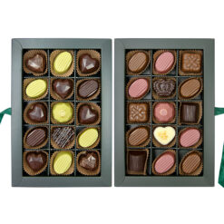 Šokoladinių saldainių rinkinyje – juodojo, pieninio, Ruby, baltojo ir baltojo su Matcha šokolado saldainiai su įvairiausiais įdarais. Iš viso – net 30 šokoladinių saldainių ir 13 skirtingų skonių!