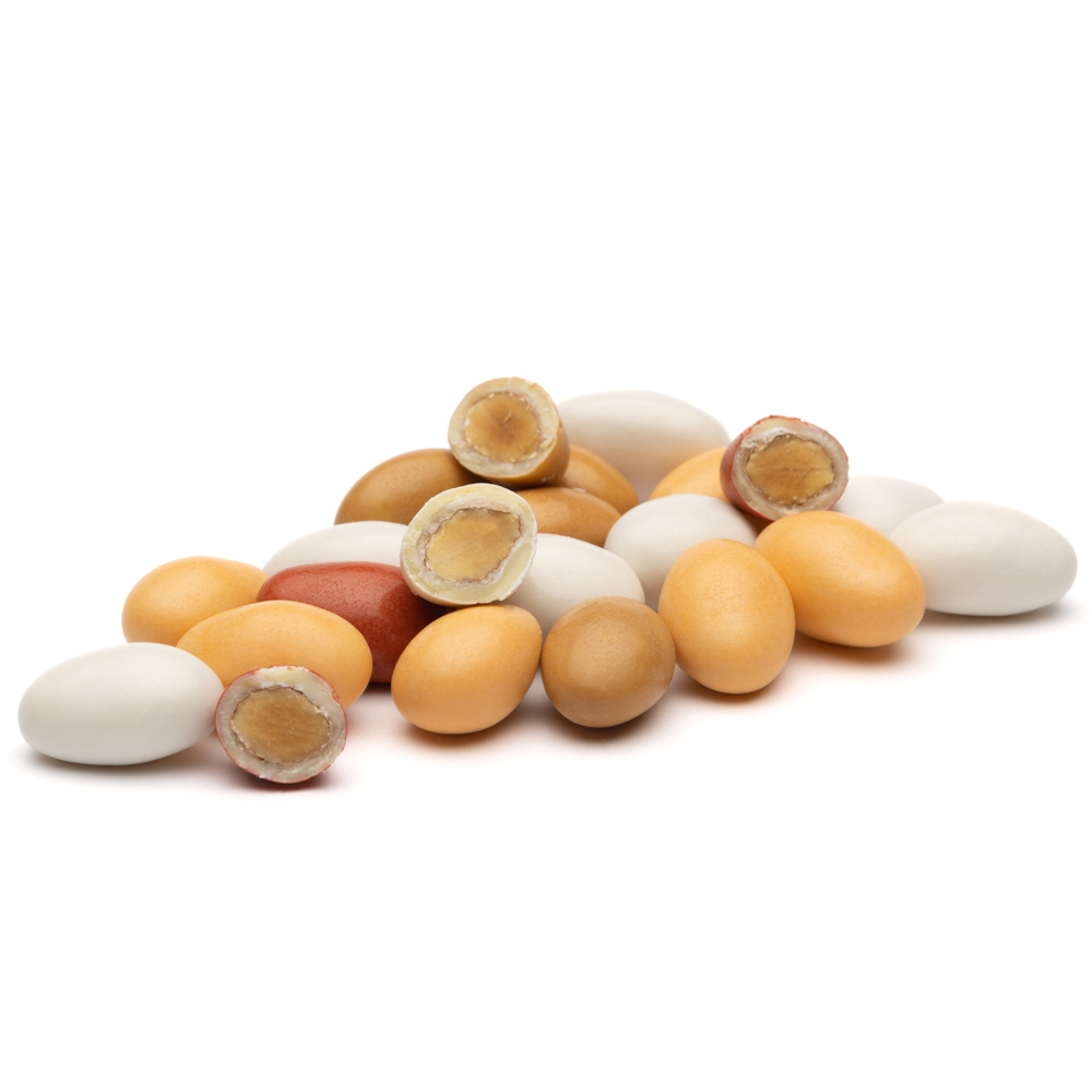 – Migdolai su baltuoju šokoladu ir traškia plėvele.