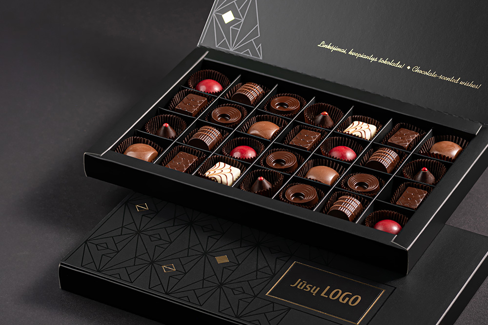 Verslo dovanas galite rinktis net iš 5 skirtingų gaminių kategorijų: saldainių rinkinių, šokolado, saldainių, dražė ir šokolado figūrų. Taip pat, galima susikurti specialius skirtingų gaminių rinkinius.